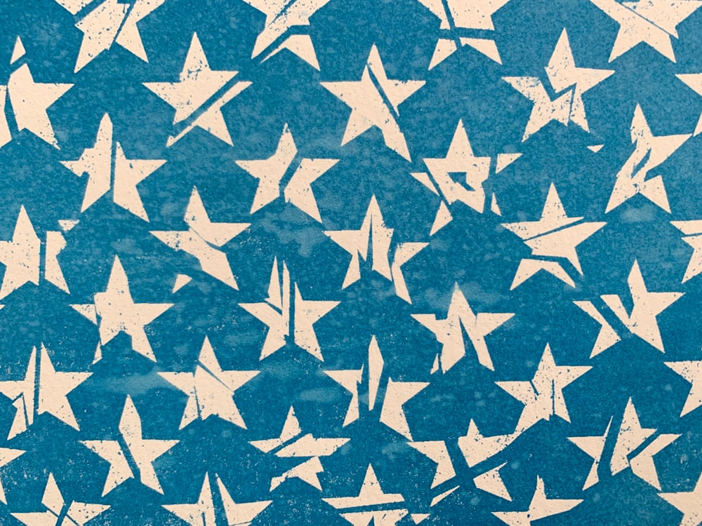 Two color silkscreen print hand pulled by the artist at the Bigfoot Press in Bangor, PA.