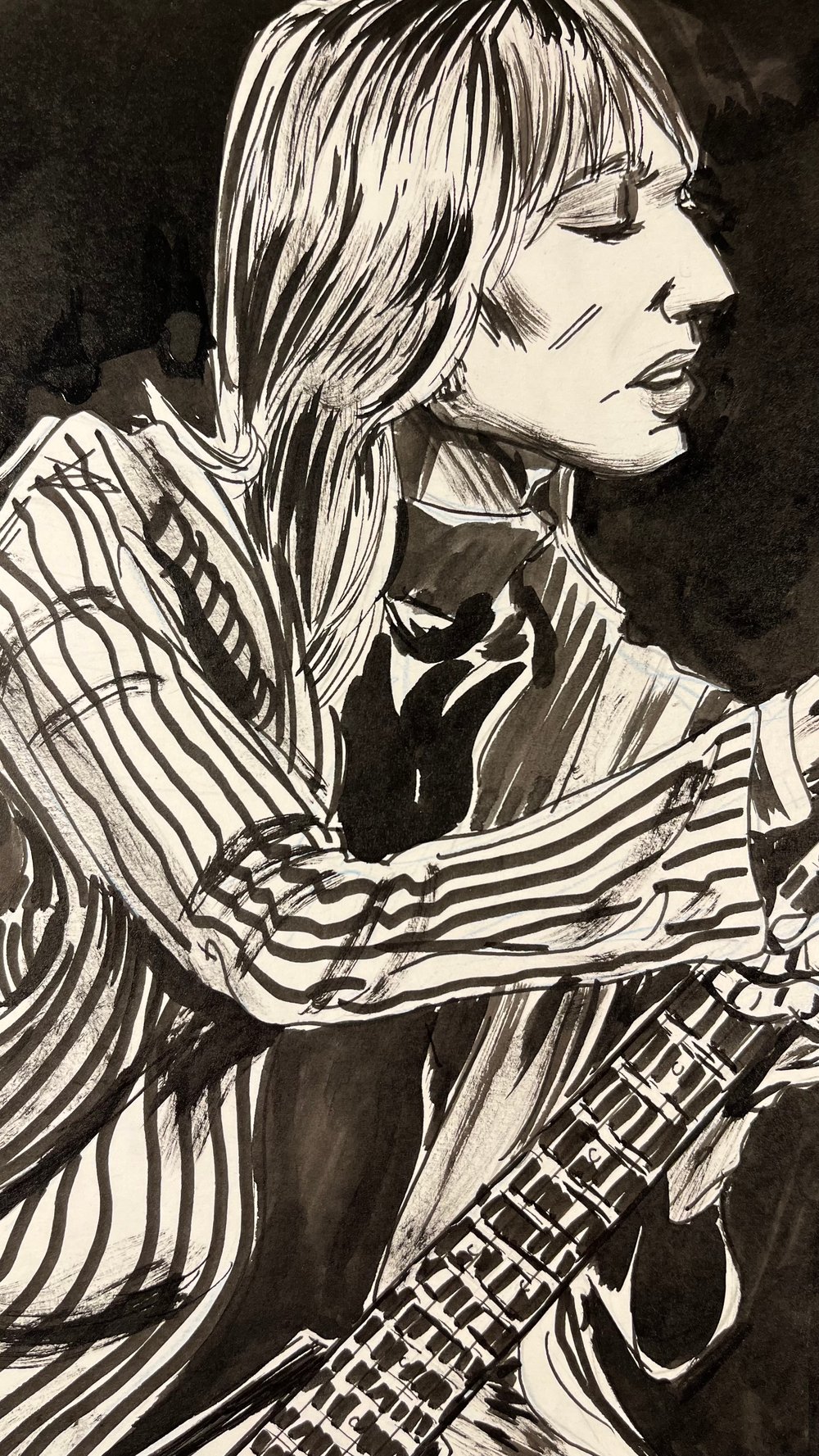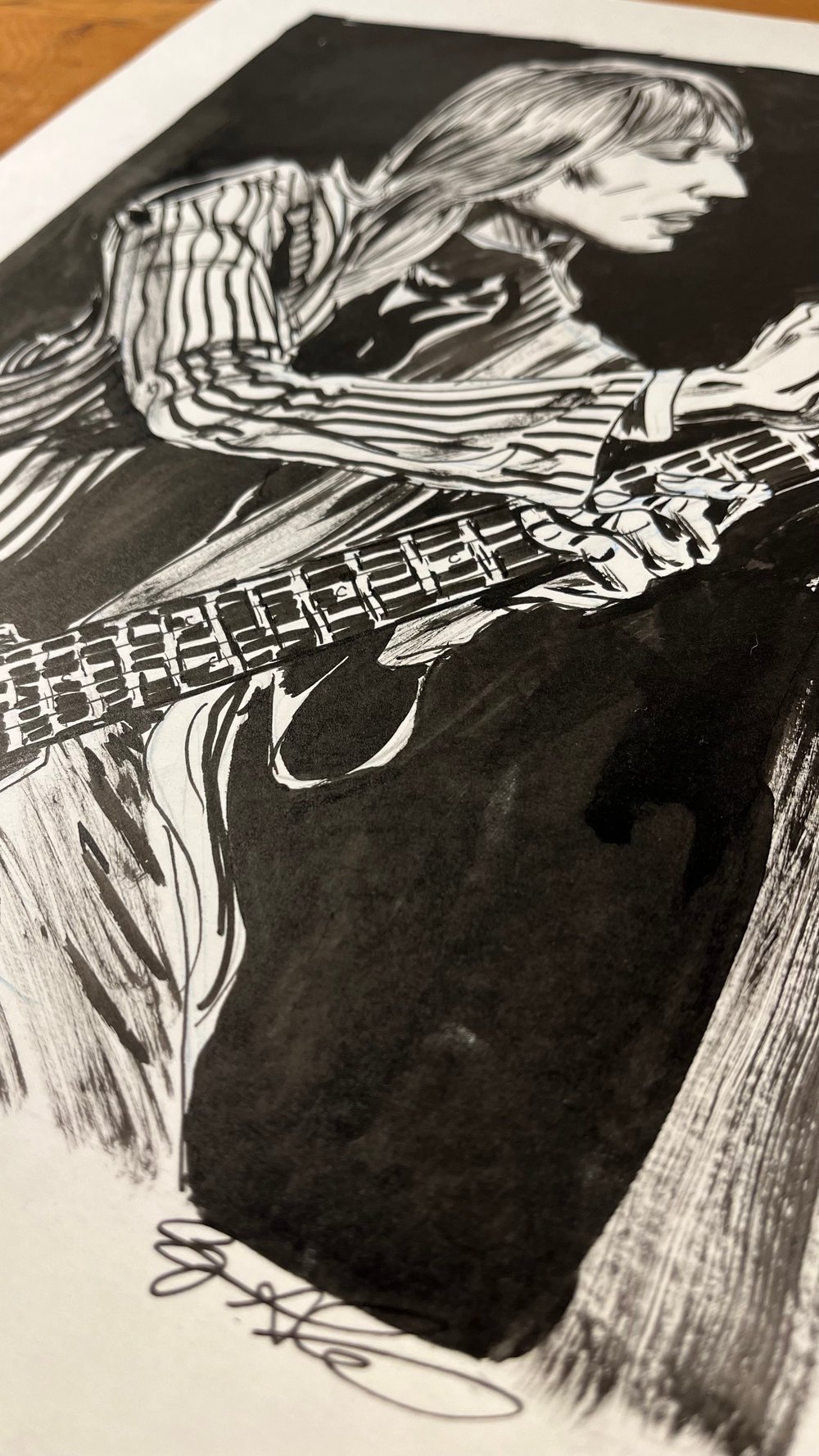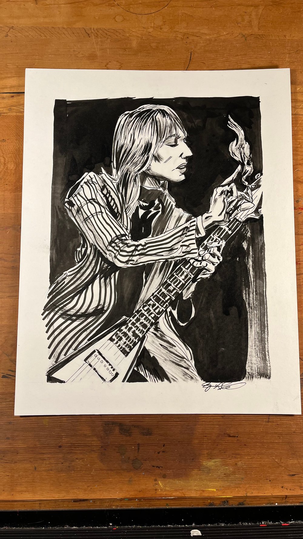 11"x14" ink on bristol board, one of a kind original drawing of rock & roll musician Tom Petty.
